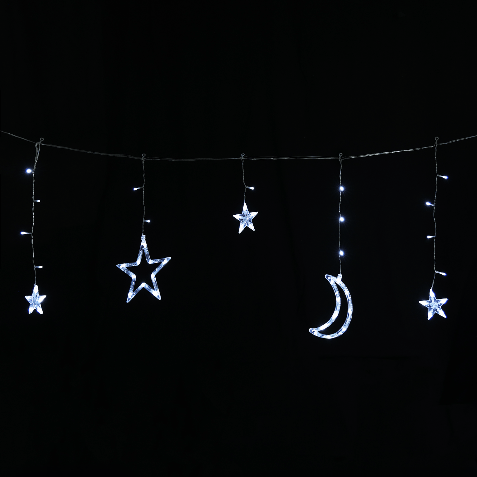 CATENA LUMINOSA SOLARE CON LUCI A LUNA E STELLE, LUCE FREDDA, 3M+3M*0.6M 12STR
